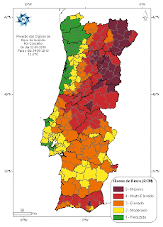 Não existem ocorrências florestais significativas activas neste momento e a previsão de risco incêndio para o dia de amanhã apresenta-se bastante favorável sobretudo para os distritos do litoral norte.